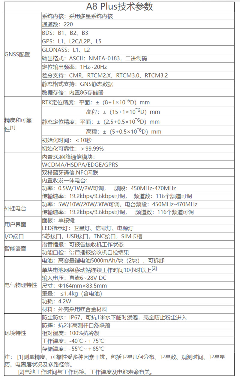 A8 Plus作为经典作品的延续,无论外部材质,操作的优化,还是内部的储存,连接的方式等都有了巨大的提升,镁合金外壳,更小的体积,8G存储,支持NFC闪联,Mini USB通用接口,高能能大功率电台,3G网络通讯,收发一体电台,新一代iHand30手簿,全新UI的Hi-Survey必一(中国)软件